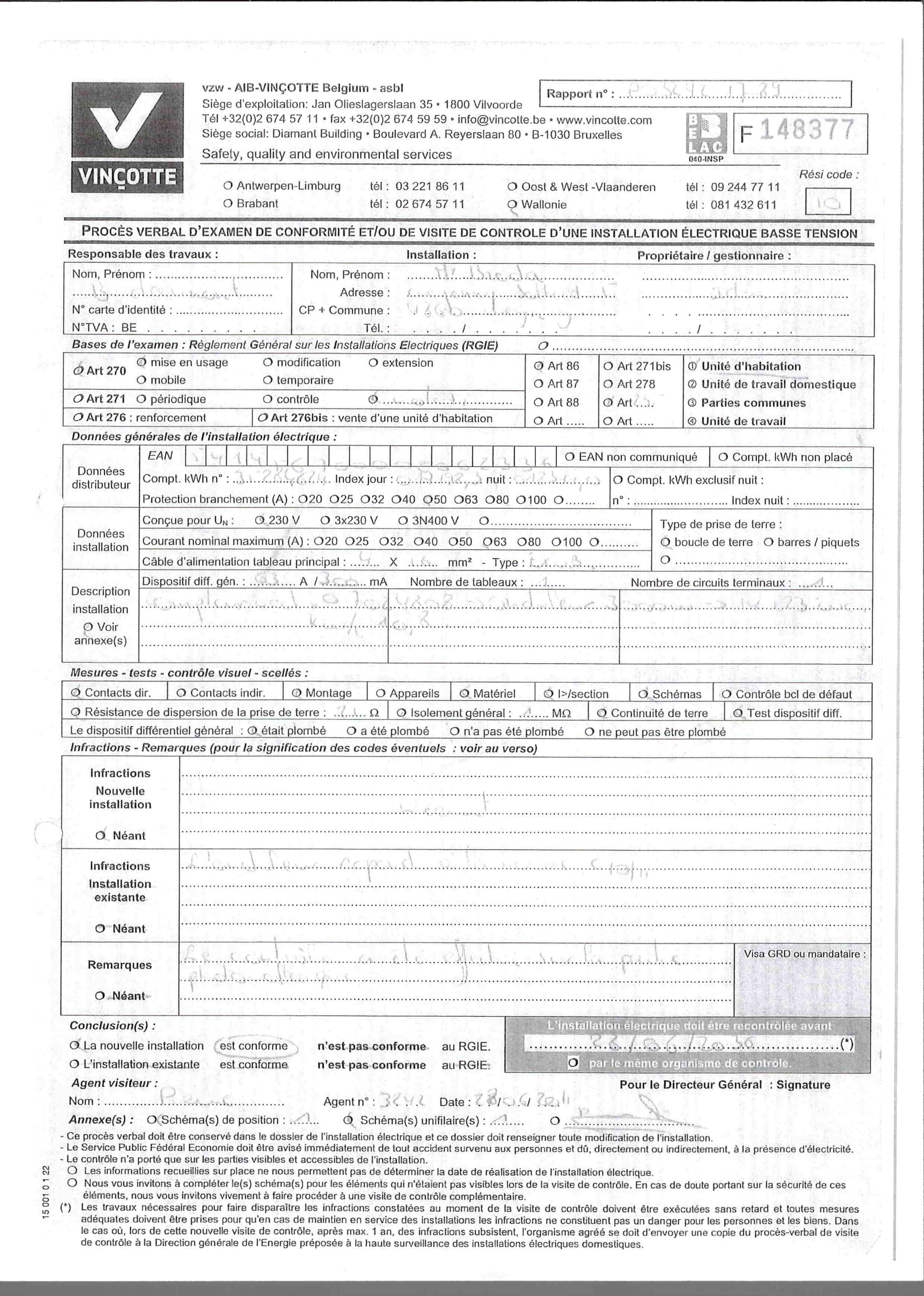 DV PVC (volets) - Electricité "non conforme" (schémas manquants) - CC GAZ - Toiture en ordre - Construction 2004 - Panneaux photovoltaïques